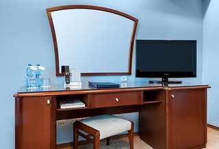 ОПИСАНИЕ НОМЕРА: Площадь: от 23,50 до 27,20 м.кв. Одна комната. В номере: Размер кровати: 160*200 см или 180*200 см, ЖК-телевизор со спутниковыми каналами, Прямые телефонные линии, Мини-бар, Беспроводной доступ в Интернет, Набор посуды, Чайник, Бесплатная минеральная вода, Индивидуальный сейф, Шторы с полным затемнением от солнечных лучей. В ванных комнатах : душевые кабины, фен, зеркало-лупа, кнопка экстренного вызова персонала.