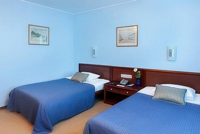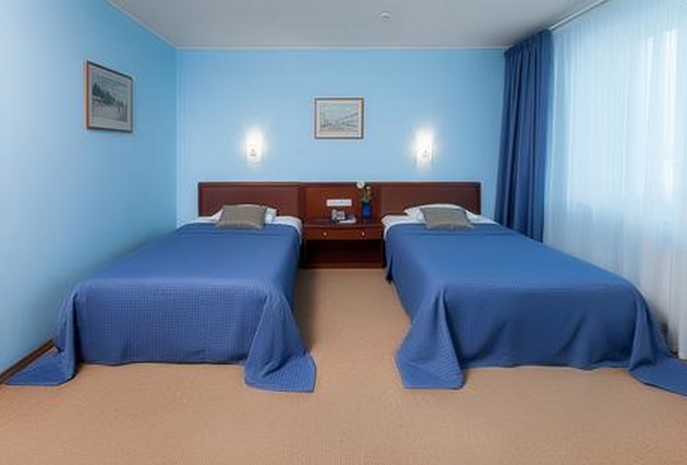 ОПИСАНИЕ НОМЕРА: Площадь: от 24,9 до 26,4 м.кв. Одна комната, в номере: 2 кровати размером 120*200 см, ЖК-телевизор со спутниковыми каналами, Прямые телефонные линии, Мини-бар, Беспроводной доступ в Интернет, Набор посуды, Чайник, Бесплатная минеральная вода, Индивидуальный сейф, Шторы с полным затемнением от солнечных лучей. В ванных комнатах : душевые кабины, фен, зеркало-лупа, кнопка экстренного вызова персонала.